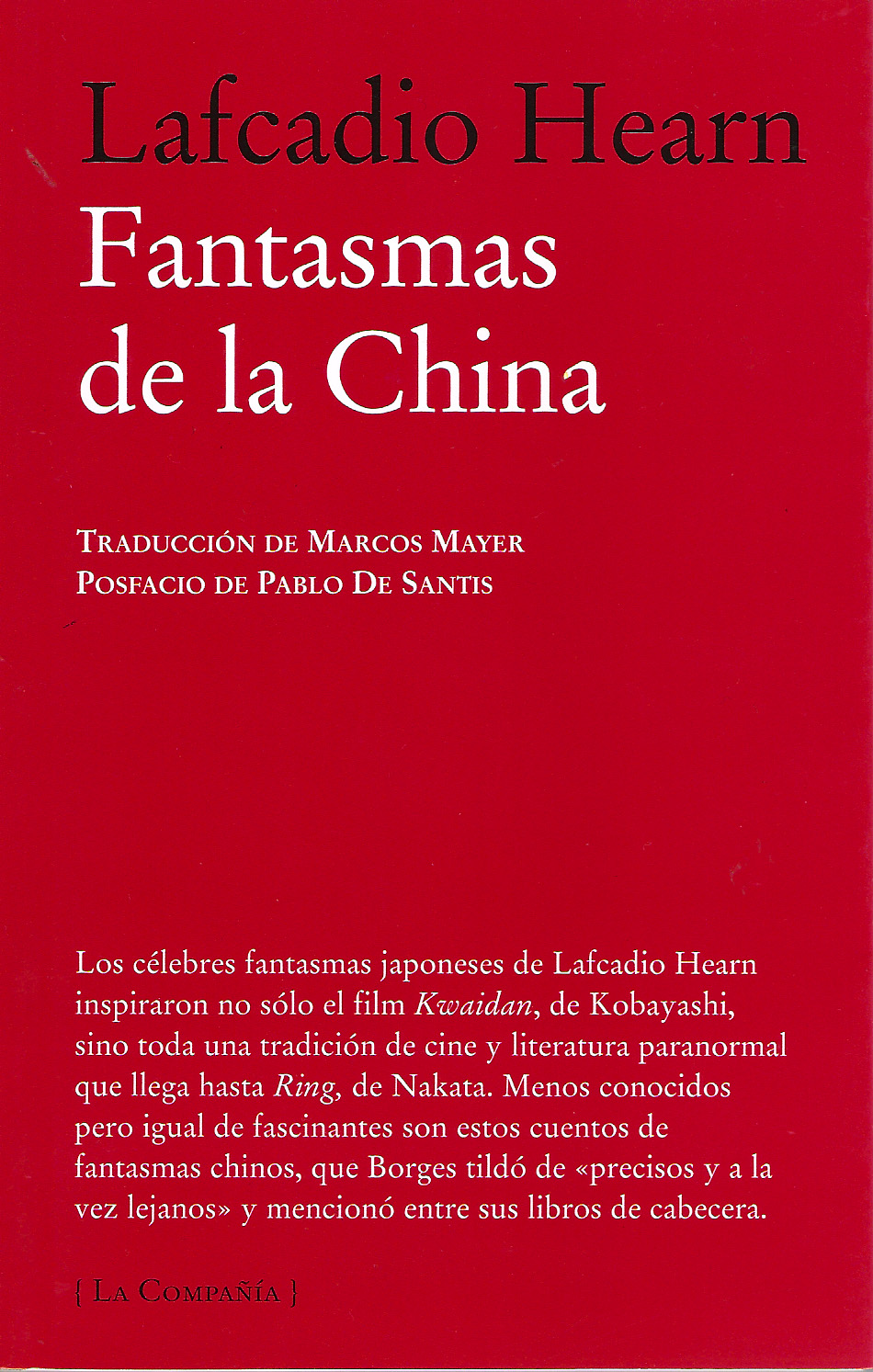 Los célebres fantasmas japoneses de Lafcadio Hearn inspiraron no sólo el film , de Kobayashi, sino toda una tradición de cine y literatura paranormal que llega hasta , de Nakata. Menos conocidos pero igual de fascinantes son estos cuentos de fantasmas chinos, que Borges tildó de "precisos y a la vez lejanos" . s