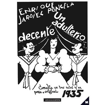 La comedia en tres actos "Un adulterio decente" se estrenó en el Teatro María Isabel de Madrid, el 2 de mayo de 1935. La obra resultó un gran éxito, pues presentaba una versión paródica y satírica del eterno tema de la infidelidad conyugal. Jardiel utiliza el procedimiento de la inversión para mostrar a una mujer infiel que, en realidad, ama al marido más que a su amante, con la consiguiente desesperación de este. La obra está llena de situaciones extremas, de gran comicidad, y abunda en los originales diálogos jardielescos, elegantes y sorprendentes. Hallamos en la obra, asimismo, una sucesión de personajes absurdos y estrafalarios que añaden humor y frescura a la trama. Es una comedia del renovador del humor español que todos deberían conocer. s
