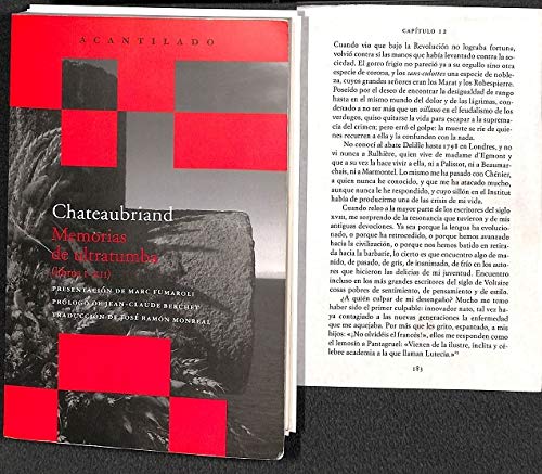 Epopeya extraordinaria de unos tiempos convulsos que François de Chateaubriand vivió como testigo y protagonista, las Memorias de ultratumba son un documento literario atemporal. Melancólico y desengañado, aristócrata que presenció la Revolución Francesa, que viajó a la joven República americana y conoció el esplendor y la falsía del Imperio napoleónico, así como la Restauración, Chateaubriand fue un hombre polifacético, hábil y vehemente, cuyas Memorias?"un templo de la muerte erigido a la luz de mis recuerdos"?nacieron como confrontación personal con la Historia, como revancha contra el tiempo. Un escritor maravilloso y de culto capaz de construir, como el profesor Fumaroli dice en el prólogo redactado para esta edición, "una reflexión profunda, de una actualidad sobrecogedora y de un alcance universal, sobre la era democrática inaugurada por la Revolución Americana y por la Revolución Francesa, sobre las grandes esperanzas que ella hizo nacer, sobre los peligros que llevaba en germen, y sobre las pruebas insólitas a las que exponía, en su expansión mundial, la libertad y la humanidad misma del hombre." s